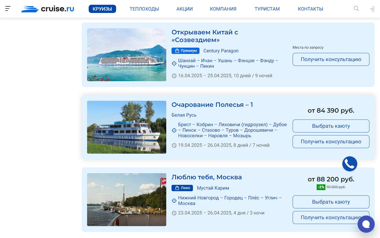 которая вот уже более 30 лет осуществляет круизы по всем судоходным линиям Европейской части России.