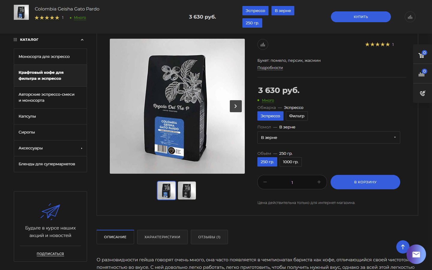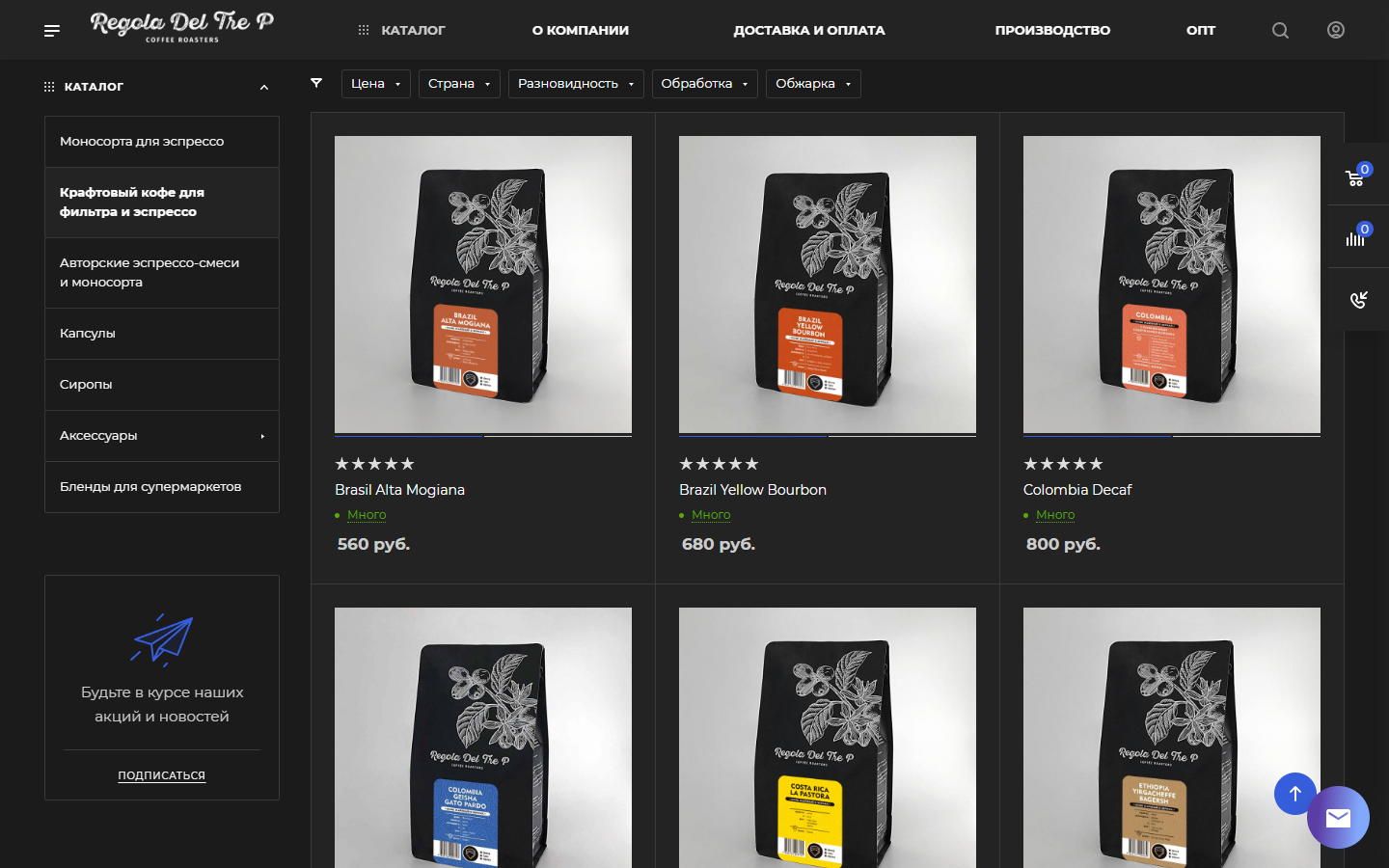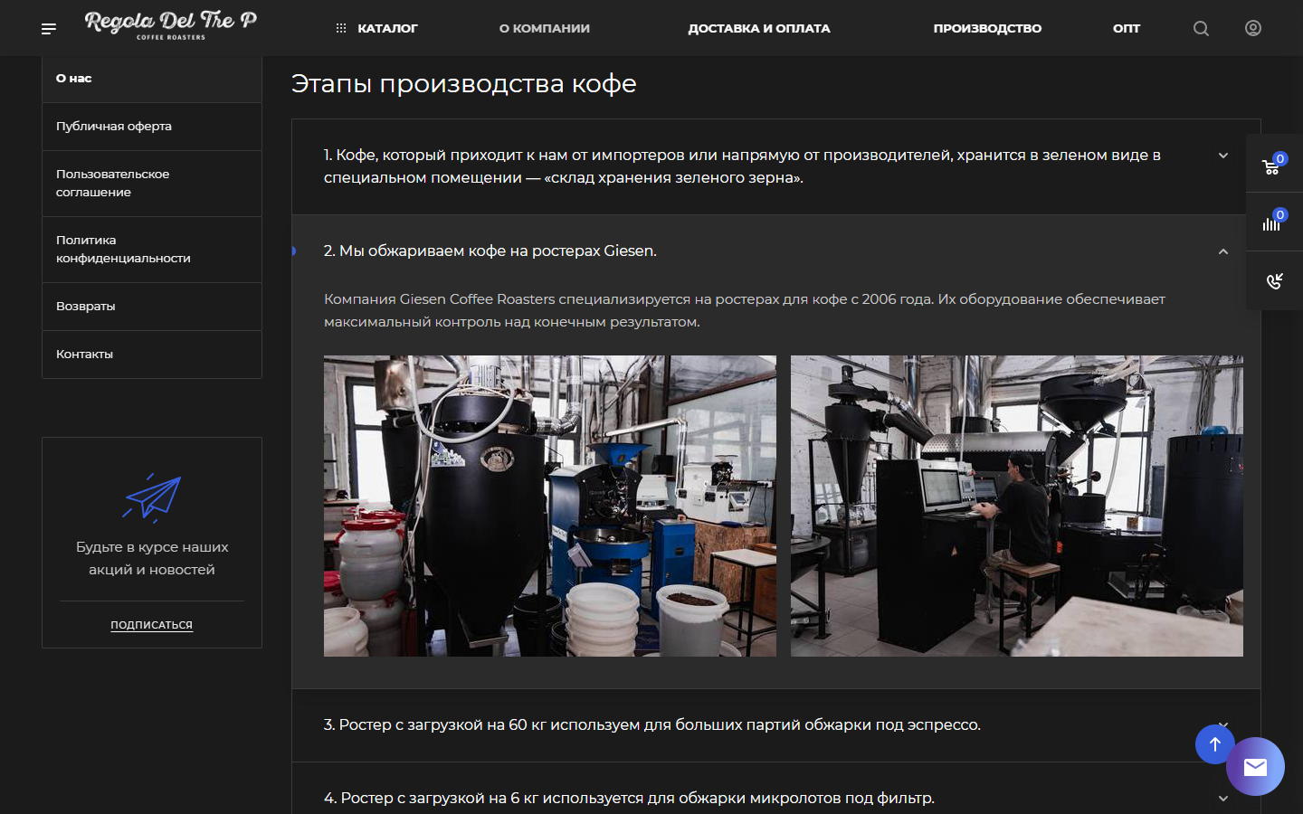 Regola Del Tre P – розничные и оптовые продажи свежеобжаренного кофе.