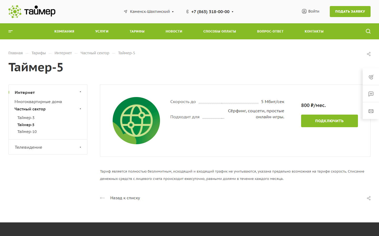 ООО «Таймер» — один из ведущих региональных операторов связи на юге России.